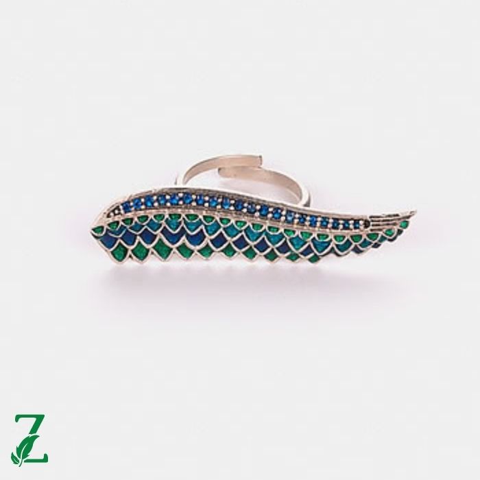 Silver Enameled Ring with Synthetic Blue Spinel Accents. Created in 925 Silver with a Dull Oxidized Finish. Extraordinarily high quality, no two pieces are actually similar! 'Own Your Plumes' is a festival of exceptional style and articulation. We've acquired the erupted structures and brilliant tones straightforwardly from the Peacock's stand-out plumage and its uninhibited movement.